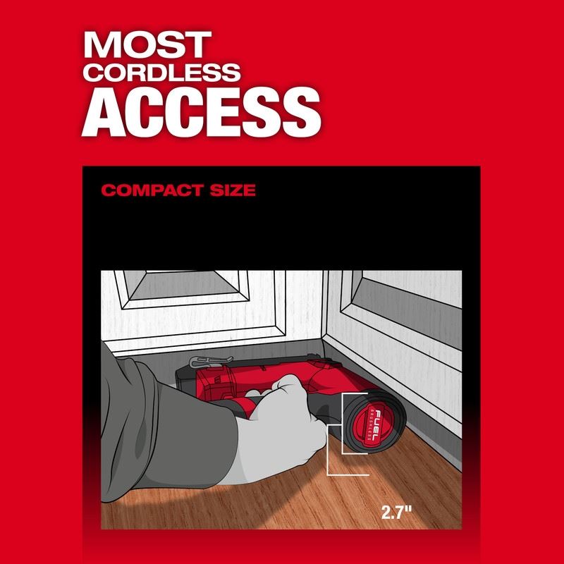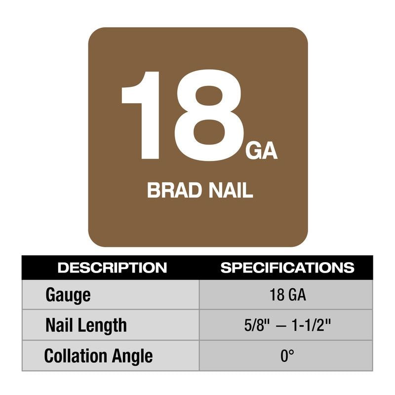 Our M12 FUEL 18 Gauge Compact Brad Nailer delivers peak productivity at the jobsite, providing users with unmatched nailing performance & access to tight spaces with the compact, lightweight, ergonomic design. Leveraging a nitrogen air spring mechanism, this brad nailer enables our users to sink 5/8 in - 1-1/2 in brad nails to the proper depth in both hard and soft materials while leaving clean, consistent nail holes. Because of the compact design, our M12 FUEL 18 Gauge Compact Brad Nailer delivers the most access of any cordless brad nailer in the lightest weight design at only 4.6lbs when paired with our M12 REDLITHIUM 2.0 battery. When paired with an M12 CP2.0 Battery, the M12 FUEL 18 Gauge Compact Brad Nailer provides over 700 nail fires on a single battery charge. For additional run time, the M12 FUEL 18 Gauge Compact Brad Nailer is fully compatible with all Milwaukee M12 REDLITHIUM Batteries.